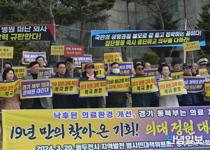안녕일보 배윤 기자 | 동두천 시민들은 20일, 동두천 제생병원 앞에 모여 정부가 추진 중인 의료 개혁과 의과대학 정원 증원을 지지하는 공동성명서를 발표했다.