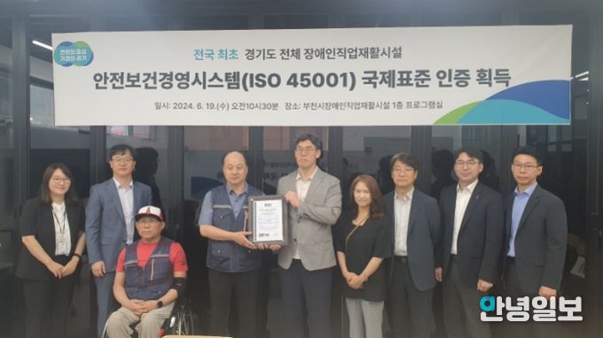 경기도는 19일 부천시장애인직업재활시설에서 ISO45001 국제표준 인증 수여식을 진행했다. ISO45001은 산업재해 예방과 최적의 작업환경을 유지를 위한 안전보건경영시스템으로 국제표준 인증이다.