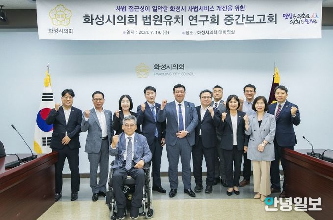 안녕일보 배윤 기자 | 화성시의회 의원연구단체인‘화성시 법원 유치 연구회’는 19일 화성시의회 대회의실에서 연구용역 중간보고회를 가졌다.