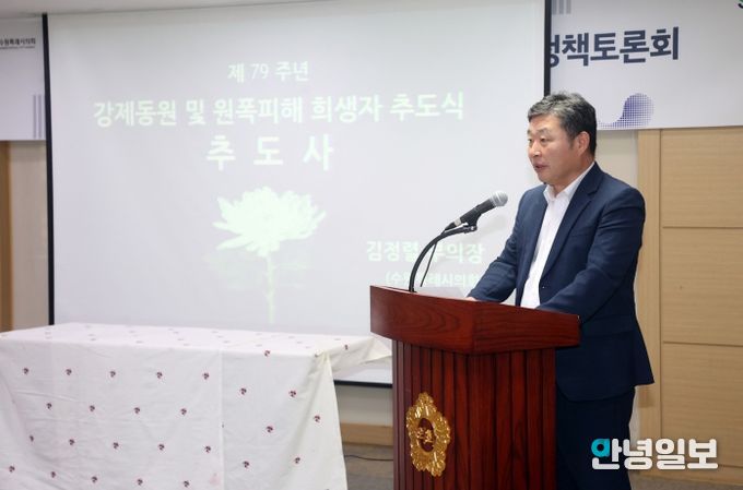본 토론회에 앞서 식전행사로 진행된 “제79주년 강제동원 및 원폭피해 희생자 추도식”은 김정렬 수원특례시의회 부의장과 사정희 수원특례시의회 시의원(더불어민주당, 매탄1·2·3·4동), 행사 관계자 등 40여 명이 참석해 희생자를 기리는 묵념과 박상복 경기도원폭피해자협의회 회장과 김정렬 수원특례시의회 부의장의 추도사, 추모시 낭독, 헌화 순으로 진행됐다.