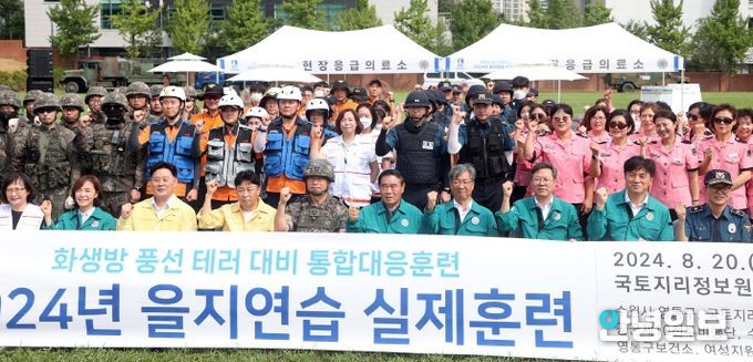 안녕일보 배윤 기자 | 수원특례시의회가 20일 수원시 영통구 국토지리정보원 운동장에서 열린 ‘2024년 을지연습 실제훈련’ 연계 ‘화생방 풍선 테러 대비 통합대응훈련’에 참석하여 관계자들을 격려했다.