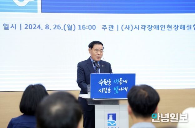 안녕일보 배윤 기자 | 수원특례시의회 이재식 의장이 26일 수원시청 중회의실에서 열린 시각장애인현장해설협회 수원시지부 창립식에 참석했다.