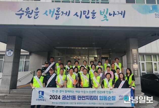 권선1동 주민자치회(회장 이상대) 및 권선1동의 주관으로 실시된 이번 순찰은 수원남부경찰서 권선파출소의 협조로 이재식 의장을 비롯해 30여 명의 단체원 등이 참석했다.