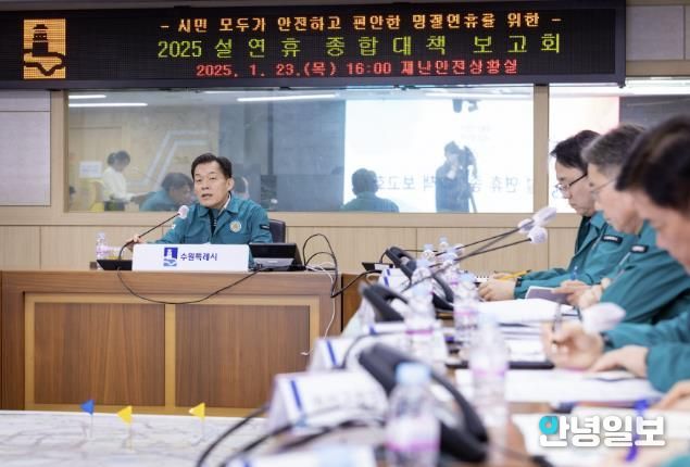 23일 시청 재난안전상황실에서 열린 ‘2025 설 연휴 종합대책보고회’를 주재한 이재준 시장은 “시민들이 편리하게 병의원·약국을 확인할 수 있도록, 안전안내문자메시지를 전송할 때 연휴 기간 문을 여는 의료기관, 약국 정보를 볼 수 있는 웹주소 링크를 첨부하라”고 말했다.