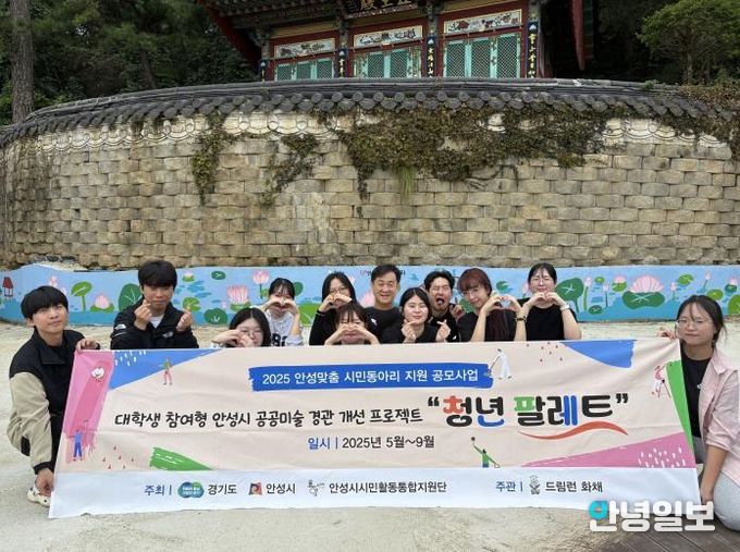 안녕일보 배윤 기자 | 안성시자원봉사센터 소속 대학생 봉사단 ‘드림런 화채(花彩)’가 지난 9월 27일과 10월 4일 이틀간 안성시 보개면 영평사에서 제2차 벽화 봉사활동을 진행했다.