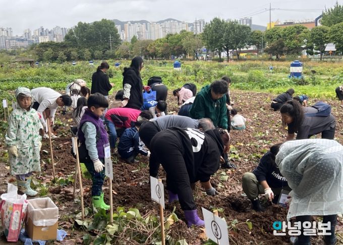 안녕일보 배윤 기자 | 수원특례시가 14일 탑동시민농장(서둔로 155)에서 가족 수확 체험 행사를 열었다.