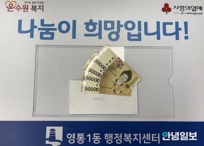 신한길 영통1동장은 “도움을 받던 분이 다시 나눔을 실천하는 모습에 큰 감동을 받았다”며 “지역사회 내 선한 영향력이 더욱 확산되어 모두가 함께하는 따뜻한 공동체가 만들어질 수 있도록 노력하겠다”고 말했다.