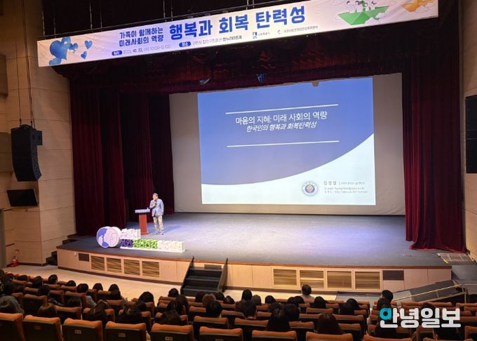 김경일 아주대학교 사회과학대학 심리학과 교수가 ‘가족이 함께하는 미래사회의 역량: 행복과 회복 탄력성’을 주제로 특강을 했다.