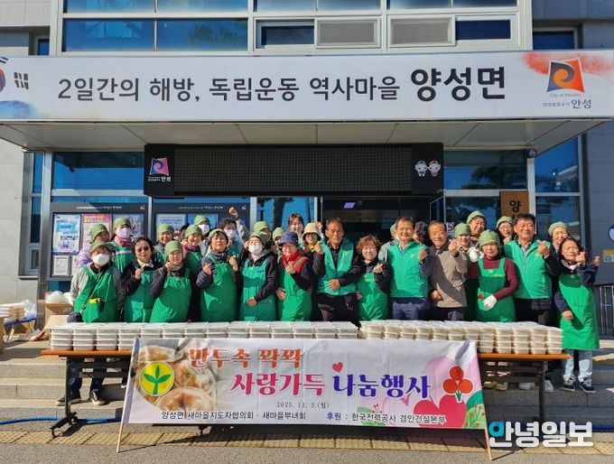 이번 행사는 한국전력공사 경인건설본부의 후원으로 진행됐으며, 양성면 새마을지도자협의회와 부녀회는 앞으로도 지속적인 나눔 활동을 통해 지역사회에 사랑과 희망을 전할 계획이다.
