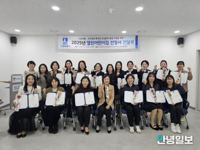 안녕일보 배윤 기자 | 수원특례시는 6일 수원시농수산물도매시장 회의실에서 ‘2025 열린어린이집 선정서 전달식’을 열고, 신규 선정된 열린어린이집 23개소에 선정서를 전달했다. 올해 유지(재선정) 대상 열린어린이집 57개소는 각 구청에서 전달한다.