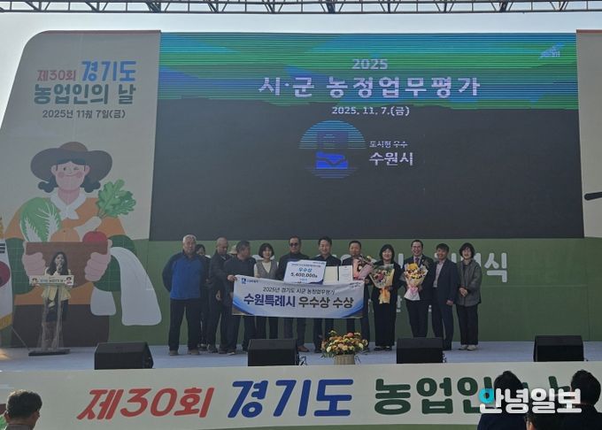 안녕일보 배윤 기자 | 수원특례시가 경기도 시군 농정업무평가에서 우수상을 받았다. 시상식은 7일 국립농업박물관 광장에서 열렸다.