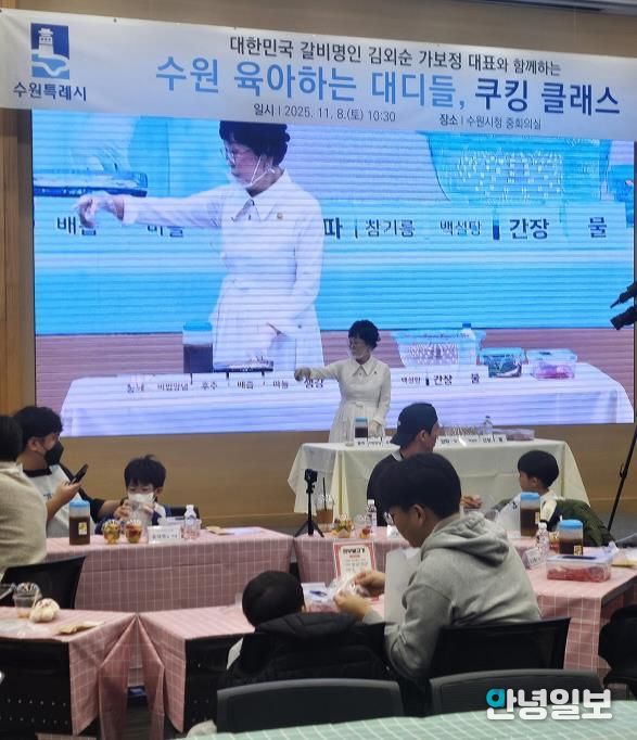 안녕일보 배윤 기자 | 수원특례시는 8일 시청 중회의실에서 ‘수원 육아하는 대디들(수육대)’ 다섯 번째 오프라인 활동인 ‘쿠킹클래스 with 가보정’을 열었다. 이번 체험에는 수육대 참여 아빠와 자녀 50가족, 120여 명이 함께했다.