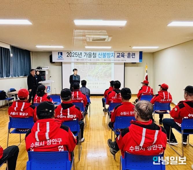 안녕일보 배윤 기자 | 수원특례시가 10일 공원녹지사업소 대회의실에서 가을철 산불방지 교육·훈련을 했다.