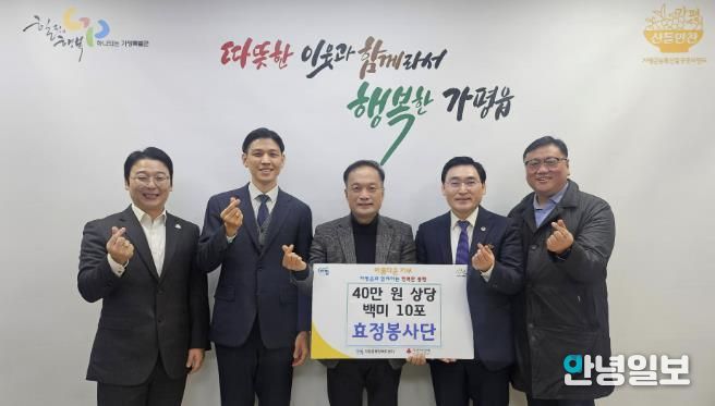 장석조 가평읍장은 “지속적으로 가평읍에 관심을 가져 주는 효정봉사단에 진심으로 감사드리며, 성품은 추운 계절 취약계층 이웃에게 큰 도움이 될 것”이라고 답했다.