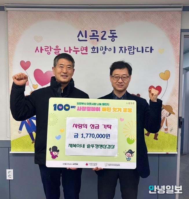 안녕일보 배윤 기자 | 의정부시 신곡2동주민센터는 12월 18일 재복이네 솥뚜껑생삼겹살이 하루 매출액 177만 원을 기탁했다고 밝혔다.