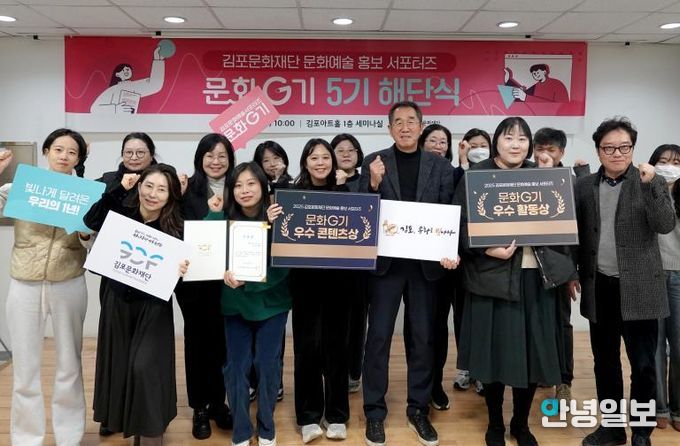 안녕일보 배윤 기자 | (재)김포문화재단은 지난 13일 김포아트홀 세미나실에서 ‘김포문화재단 문화예술 홍보서포터즈 문화G기 5기 해단식’을 개최하고, 9개월간 활동을 이어온 서포터즈들의 공식 활동을 마무리했다고 밝혔다.