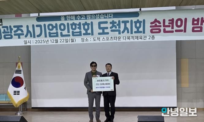 안녕일보 배윤 기자 | (사)광주시기업인협회 도척지회는 지난 22일 도척스포츠타운에서 송년회를 개최하고 연말연시를 맞아 도척면에 이웃돕기 성금 300만 원을 기탁했다.