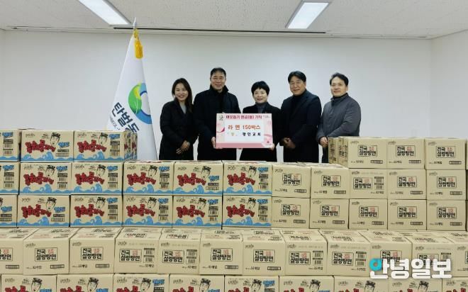 안녕일보 배윤 기자 | 광주 광민교회는 지난 23일 탄벌동 행정복지센터를 방문해 연말연시 소외된 이웃을 돕기 위한 라면 150박스를 기탁했다.