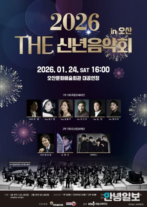 안녕일보 배윤 기자 | (재)오산문화재단은 2026년 1월 24일 오후 4시, 오산문화예술회관 대공연장에서 '2026 THE 신년음악회 in 오산'을 개최하며 시민들에게 새해 첫 문화 인사를 전한다.
