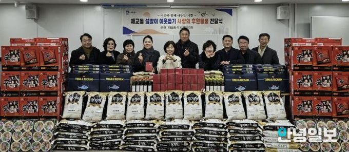 안녕일보 배윤 기자 | 지난 2일 수원시 팔달구 매교동은 설 명절을 맞이하여 관내 소외되는 어려운 이웃이 없도록 설명절 이웃나눔 후원물품 전달식을 가졌다.