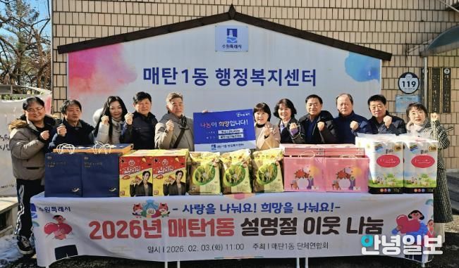 안녕일보 배윤 기자 | 수원특례시 영통구 매탄1동은 지난 3일 설 명절을 맞이해 관내 저소득층 300여 세대에 후원물품을 전달하는 이웃돕기 나눔 전달식을 개최했다.