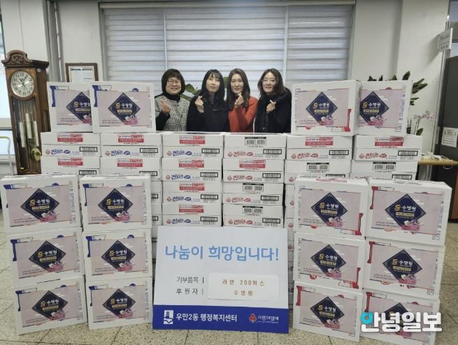 한편, 이날 기부된 라면 200박스는 우만2동 행정복지센터를 통해 홀몸 어르신, 저소득 가구 등 도움이 필요한 이웃들에게 전달될 예정이다.
