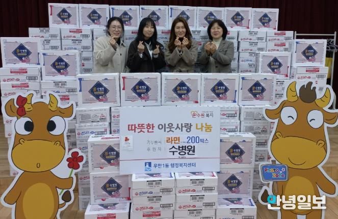 안녕일보 배윤 기자 | 수병원은 지난 4일, 설 명절을 맞아 어려운 이웃들을 위해 라면 200박스를 우만1동 행정복지센터에 기부하며 이웃사랑을 실천했다.
