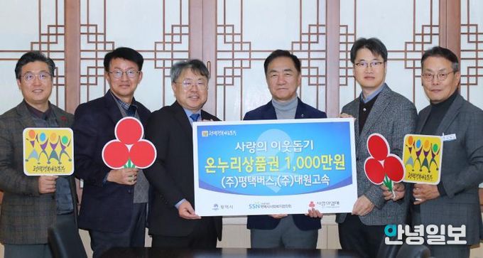안녕일보 배윤 기자 | ㈜평택버스는 지난 2일 관내 취약계층이 풍족한 설 명절을 보낼 수 있도록 온누리상품권 1천만 원을 평택시청 대외협력실에서 평택행복나눔본부로 전달했다.