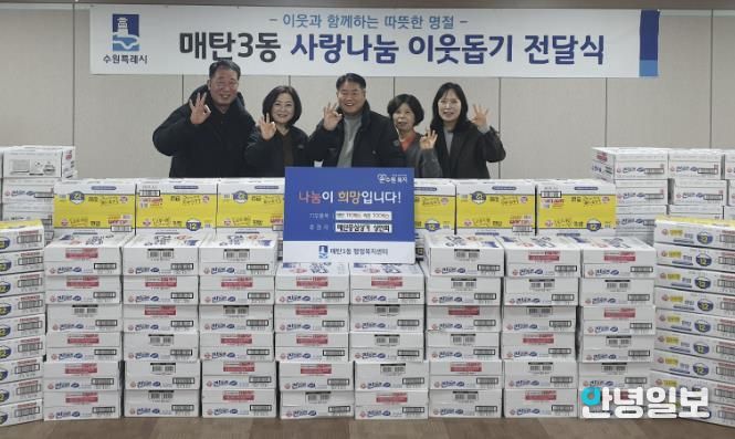 정희경 매탄중심상가상인회장은 “설 명절만큼은 우리 주변의 어려운 이웃들이 소외되지 않고 따뜻한 정을 느끼며 든든하게 보내시길 바라는 마음으로 회원들과 정성을 모았다”며, “앞으로도 지역 상인들이 힘을 합쳐 주변을 살피고 나눔을 실천하는 활동에 적극 앞장서겠다”고 전했다.