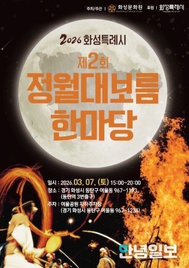 안녕일보 배윤 기자 | ‘2026년 화성특례시 제2회 정월대보름 한마당’이 오는 3월 7일 오후 3시부터 8시까지 동탄역 3번 출구 앞 광장에서 열린다.