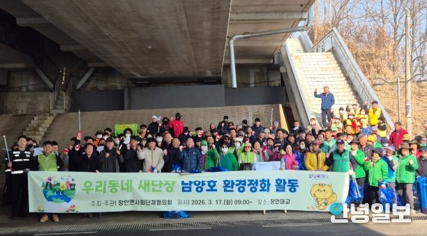 안녕일보 배윤 기자 | 화성특례시 만세구 장안면은 3월 17일 남양호 일원에서 장안면 사회단체협의회 주최로 ‘2026년 남양호 환경정화 활동’을 실시했다.