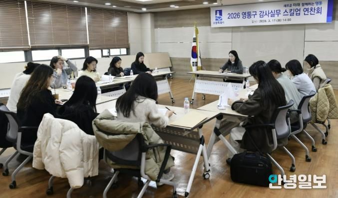 안녕일보 배윤 기자 | 수원시 영통구는 지난 17일 동 행정복지센터 실무자 12명을 대상으로 '감사실무 스킬업 연찬회'를 개최했다. 이번 연찬회는 종합감사 과정에서 반복적으로 지적되는 사례를 중심으로 실무 대응 역량을 높이고, 직원들의 전문성을 강화하기 위해 마련됐다.