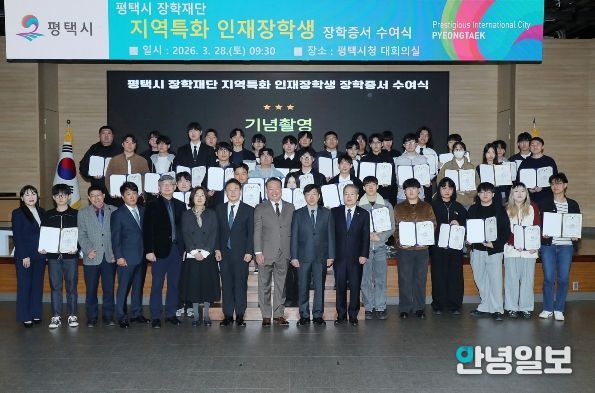 안녕일보 배윤 기자 | 평택시 장학재단은 지난 3월 28일 평택시청 대회의실에서 '2026년도 지역특화 인재 장학생 장학증서 수여식'을 개최했다.