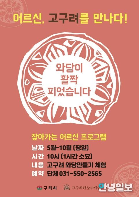 구리시 관계자는 “이번 프로그램을 통해 어르신들이 고구려 문화를 직접 체험하며 활력 있는 시간을 보내시길 바란다”라며 “세대 간 문화 향유 격차를 해소하고 우리 역사에 대한 자긍심을 높이는 계기가 되길 기대한다”라고 밝혔다.