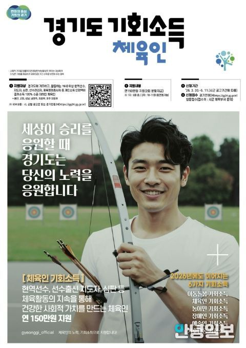 안녕일보 배윤 기자 | 가평군은 3월 30일부터 5월 11일까지 ‘2026년 경기도 체육인 기회소득’ 신청 접수를 받는다.