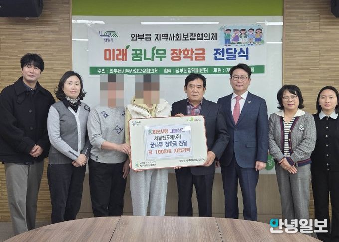 이날 전달식에는 와부읍장을 포함한 남부희망케어센터 관계자, 지역사회보장협의체 위원장 및 장학금 대상 아동 가구가 참석했다. 장학금은 지역 아동 10명에게 매월 10만 원씩 지원하는 방식으로 전달된다.