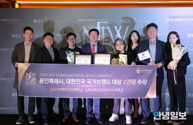 안녕일보 배윤 기자 | 용인특례시가 칸 국제광고제, 클리오광고제와 함께 세계 3대 광고제로 꼽히는 뉴욕페스티벌(NYF)이 주관하는 ‘2026 뉴욕페스티벌 대한민국-국가브랜드 대상’(NYF K-NBA)에서 도시브랜드(CI) 부문과 반도체산업 선도 도시 부문 1위로 선정됐다.