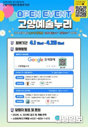 안녕일보 배윤 기자 | 고양시장애인종합복지관은 장애예술인의 창작활동을 지원하고 문화예술 향유 기회를 확대하기 위해 온라인 문화예술 플랫폼 ‘고양예술누리’를 지난 4월 1일 정식 오픈했다.