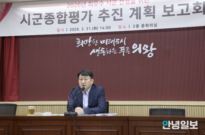 안녕일보 배윤 기자 | 의왕시는 지난 최근 시청 중회의실에서 부시장 주재로 ‘2026년 시군종합평가 추진 계획 보고회’를 개최하고, 최우수 시군 선정을 위한 대응 전략 마련에 나섰다.