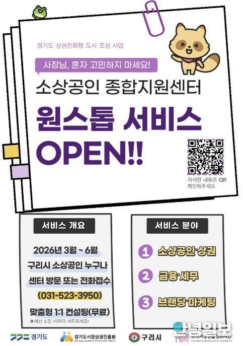 안녕일보 배윤 기자 | 구리시상권활성화재단은 소상공인의 경영 애로를 원스톱으로 해결하는 ‘원스톱 지원 서비스’를 공식 개시하고, 6월 10일까지 밀착형 지원을 운영한다고 밝혔다.