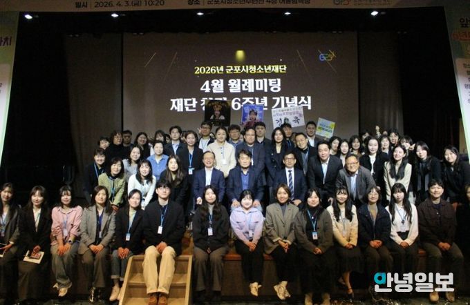 안녕일보 배윤 기자 | 군포시청소년재단은 4월 3일 군포시청소년수련관 청소년어울림극장에서 4월 월례미팅을 열고, 창립 6주년을 맞아 미래도약 의지를 다지는 자리를 마련했다. 이날 행사에는 군포시청소년재단 임직원, 화용선차예문화연구소 등 80여 명이 참석했다.