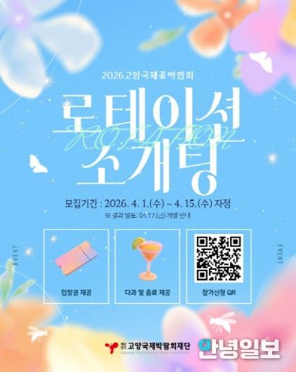 안녕일보 배윤 기자 | 재단법인 고양국제박람회재단은 2026고양국제꽃박람회 기간 중 청춘 남녀를 위해 참여형 프로그램 ‘로테이션 소개팅’을 기획했다.