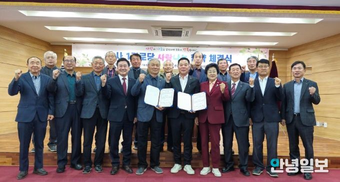 ‘1사1경로당’협약은 관내 기업이나 단체가 경로당과 1:1 결연을 맺어 후원과 봉사를 실천하는 사업이다. 이번 협약식에는 신둔농협(조합장 정하용)과 신둔면 분회 및 관내 29개소 경로당이 참여해 지역 어르신들의 복지 증진을 위해 상호 협력하기로 했다.