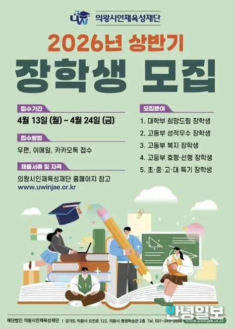 안녕일보 배윤 기자 | 의왕시인재육성재단이 2026년 상반기 장학생을 모집한다.