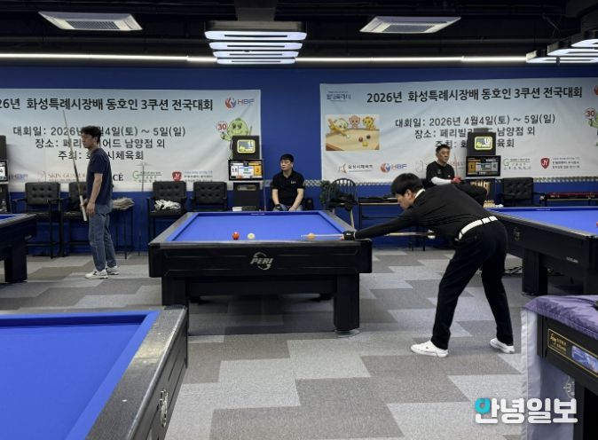 페리빌리어드(남양점) 등 관내 당구장 4개소에서 약 500여 명이 참가한 가운데 ‘2026 화성특례시장배 당구대회’가 성황리에 개최됐다.