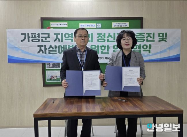 안녕일보 배윤 기자 | 가평군정신건강복지센터·자살예방센터는 지역사회 정신건강 증진과 자살 예방을 위해 청평우리병원과 업무협약(MOU)을 체결했다고 9일 밝혔다. 지난 7일 체결된 이번 협약은 최근 증가하는 정신건강 문제와 자살 위험군에 대한 대응 역량을 강화하기 위해 마련됐다.