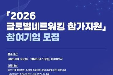 수원특례시, '2026 글로벌네트워킹 참가지원' 참여할 벤처·창업 기업 7개 사 모집