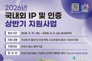 안양산업진흥원, 2026년 국내외 IP 출원 및 인증 상반기 지원사업 모집