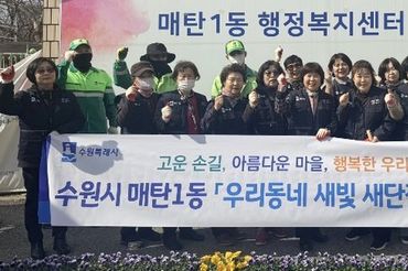 수원시 영통구 매탄1동 '새빛 새단장'…새봄맞이 대청소·초화 식재 활동 전개