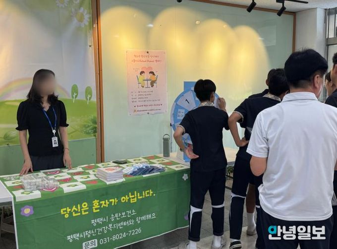 안녕일보 배윤 기자 | 평택시 송탄보건소 정신건강복지센터는 9월 10일 자살예방의 날과 10월 10일 정신건강의 날을 맞아, 지난 3일 효명중학교에서 스쿨피스(School Peace) 캠페인을 진행했다.